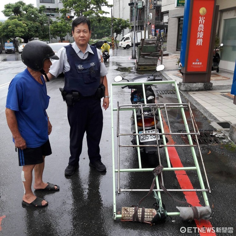 台南市警一分局府東所巡佐蔡昆達及警員王任信,執行轄區內易淹水區域裕農路與裕義路口,查報是否有淹水情形及在現地守望監控,防患未然時,接獲1名86歲李姓老翁在大雨中求助他機車疑似失竊,也忘了回家的路,經警方仔細詢問,循線終於找到李老的機車,並通知其家人帶回照顧。
