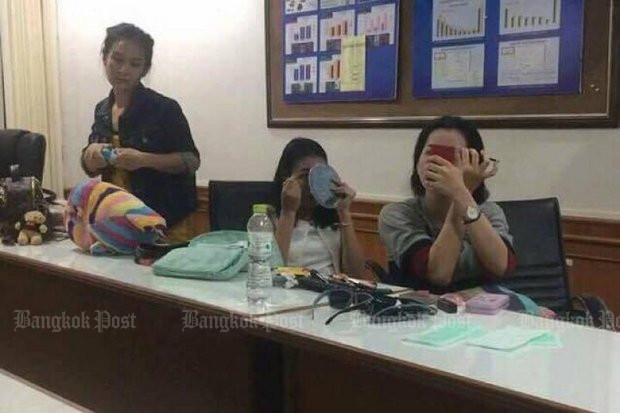 ▲涉案的3名女子在警局為了給大家拍美照,甚至還化妝、聊天。(圖/翻攝自曼谷郵報,下同)
