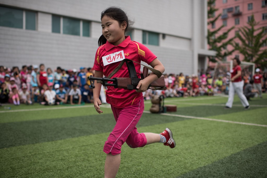 北韓平壤6日舉辦活動慶祝「兒童節」,但是活動節目卻是非常誇張,竟然讓兒童在活動上比賽投擲手榴彈、匍匐前進、障礙跑步等軍隊基本教練,還有人背起仿真AK47步槍奔跑,其中一位女童接受訪問時還說:「長大之後要參加軍隊,維護尊敬的最高領導人金正恩。」