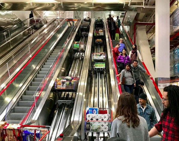 有網友在「COSTCO 好市多 消費經驗分享區」PO文分享,美國好市多「人車分離」手扶梯,看起來十分酷炫,不僅省力又安全。其他網友看完紛紛稱讚這個設計實在太屌,敲碗希望能引進台灣,不過其實台灣有賣場早就有了。