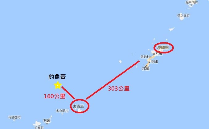 ▲宮古海峽位在宮古島與沖繩本島間,最寬處約300公里,距離釣魚台列嶼僅160公里。(圖/翻攝自Google Map)