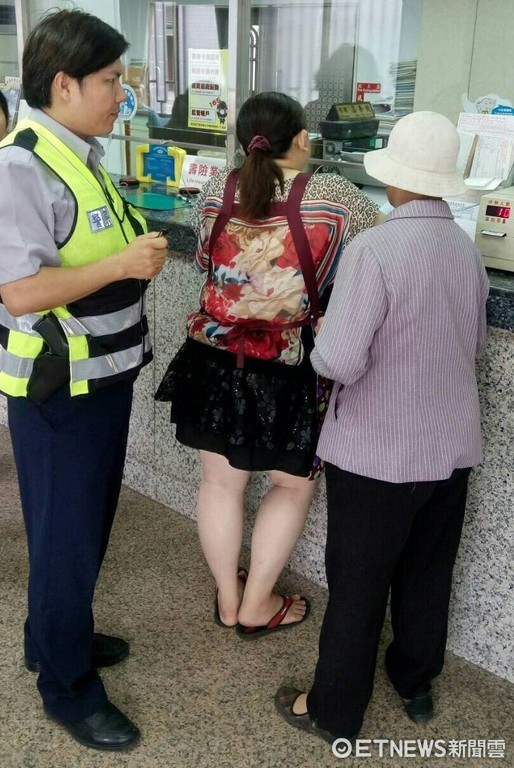 ▲台東池上分駐所員警載老婦人至郵局查詢帳戶內餘額,所幸分文未減 。(圖/台東縣警察局提供 下同)