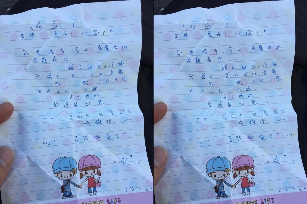 還記得7年級小時候,沒有手機的年代,上學時班上總有不少同學喜愛寫信、傳紙條,不管是給好友、閨蜜或愛人,在有香味的彩紙上寫下只有彼此才懂的語言。就有女網友分享一張信件,上頭是中文、英文和數字組合成複雜難解的「火星文」,令無數人費盡心思想破解!