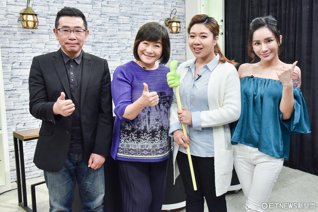 ▲資深媒體人胡孝誠(左起)、勵馨基金會執行長紀惠容、《夜貓追追追》主持人璟柔、歌手梁云菲一起上節目聊性侵案。(圖/記者李毓康攝)