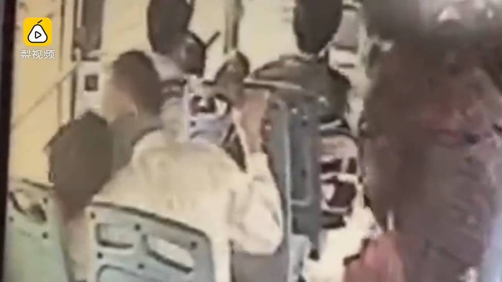 ▲老頭在公車上大膽親吻女童的嘴。(圖/翻攝梨視頻,下同。)