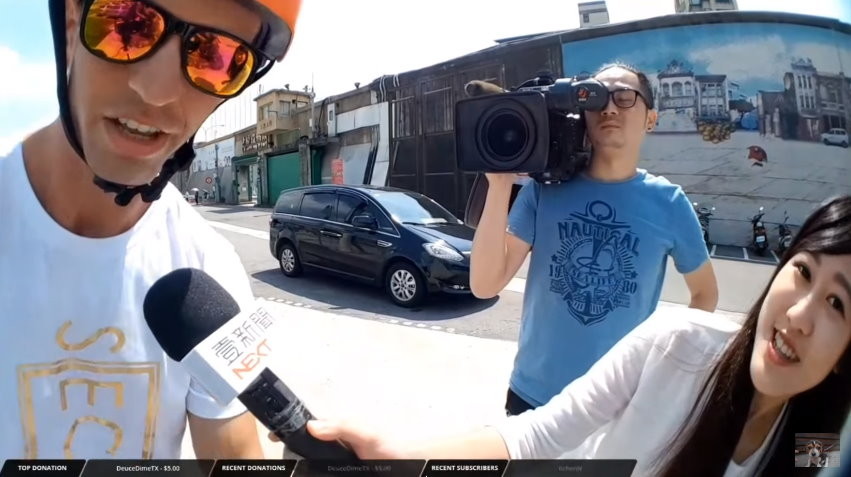 ▲《壹電視》女記者全程用中文訪問美籍知名實況主Cjayride。(圖/翻攝「假奶」YouTube)