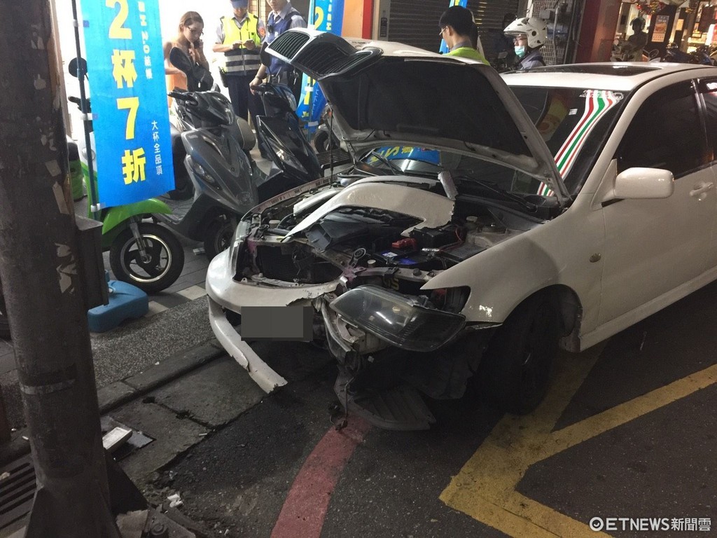▲毒品通緝黃男遭追緝自撞號誌桿,竟丟下女友及友人拔腿就跑。(圖/記者林煒傑翻攝)