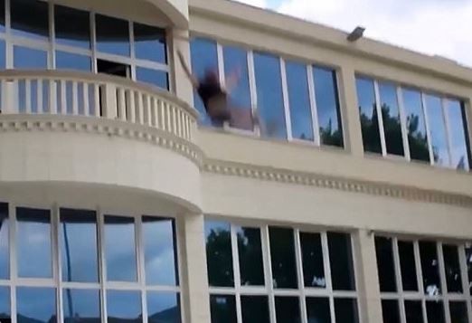 ▲老闆從陽台一躍而下,嚇壞大批員工。(圖/翻攝Igor Krezic影片,下同。)