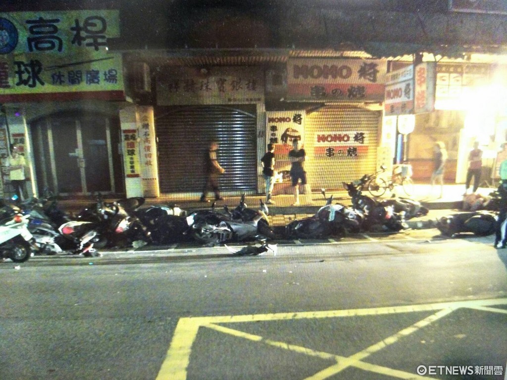 ▲陳男返家途中一時恍神,竟衝撞向路邊20多輛機車。(圖/記者林煒傑翻攝)