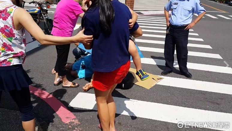 附近民眾見狀,一大堆人不約而同上前幫忙,有人忙報警,有的人忙撐傘遮陽,有人怕柏油路面太熱會燙傷騎士,拿紙板幫騎士墊身體,有的人為受傷騎土打氣,叫傷者不要動,救護車很快就到;還有的人忙著安撫那位抱著小孩驚嚇過度的肇事媽咪!一直等到救護車到來,將傷者送醫。翁姓網友對社區民眾的助人熱忱十分感動,對身為台南人感到自豪!