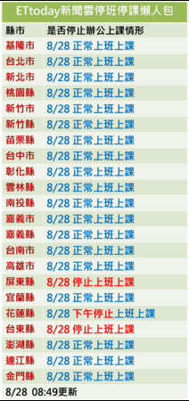 有關28日的停班停課消息,《ETtoday新聞雲》也將為大家隨時更新。