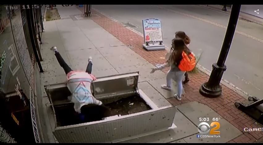 從監視錄影器的畫面看得出來,一旁經過的兩名路人也因為這個場景嚇了一大跳,隨後大批警消到場將這名婦人救出,並送往醫院。據悉,這名婦人全身多處摔傷,傷勢十分嚴重。