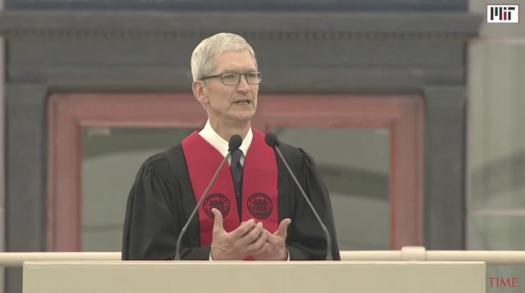隨後 Tim Cook 被邀請到麻省理工學院的畢業典禮上發言,過程中則是開了微軟公司一個玩笑,指出自己在研究所時期,閱讀了偉大哲學家和作家的作品,並對自己的未來產生思考,然而讓他覺得沮喪的是,想用 Windows PC 找出答案和做出艱難決定的過程,這樣的設備卻起不了作用。