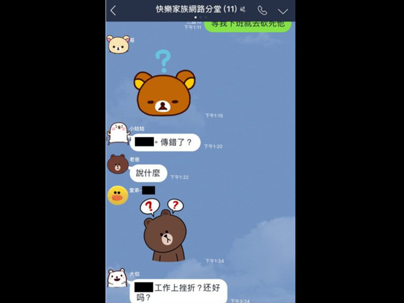 原來,原po留下一句話給女友,上面寫著「等我下班就去砍死他」,卻不小心傳錯群組。看到兒子發這種訊息,家人紛紛私下遞來關心,光是媽媽就說了一大串:「還好嗎?新環境一定有壓力,媽媽相信你有能力也夠成熟能夠克服,寶貝加油,媽媽相信你的學習能力,你很聰明,萬事起頭難,慢慢上手,不要給自己太大壓力。」