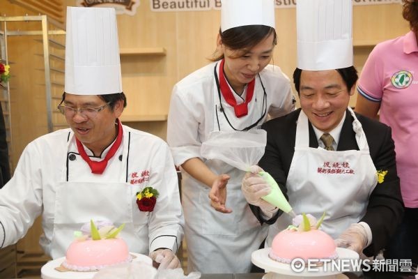 ▲台南市長賴清德,小露身手,DIY製作藝術蛋糕,成品精美獲得現場來賓一致好評。(圖/市府提供)
