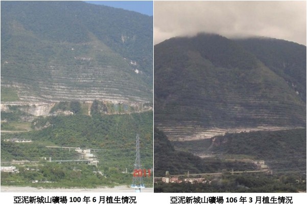 礦務局指出,該礦為減低開採過程中對鐵公路視覺景觀造成之衝擊,採用內凹露天階段式開採作業方式,對於開採完成之採掘平台立即辦理植生綠化復育工作,以最近5年前、後照片比較,顯見綠化復育及視覺景觀已有相當程度之改善。