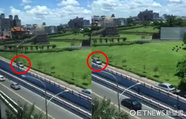 ▲7輛轎車大太陽底下集體緩慢倒退,原來是為了禮讓一輛逆向轎車。(圖/「綠豆嘉義人」臉書粉專授權提供/下同)