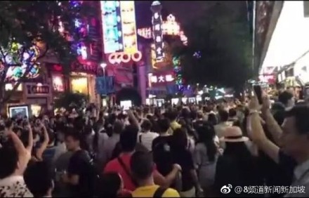 ▲上海南京路爆發示威遊行。(圖/翻攝自8頻道新聞新加坡微博)