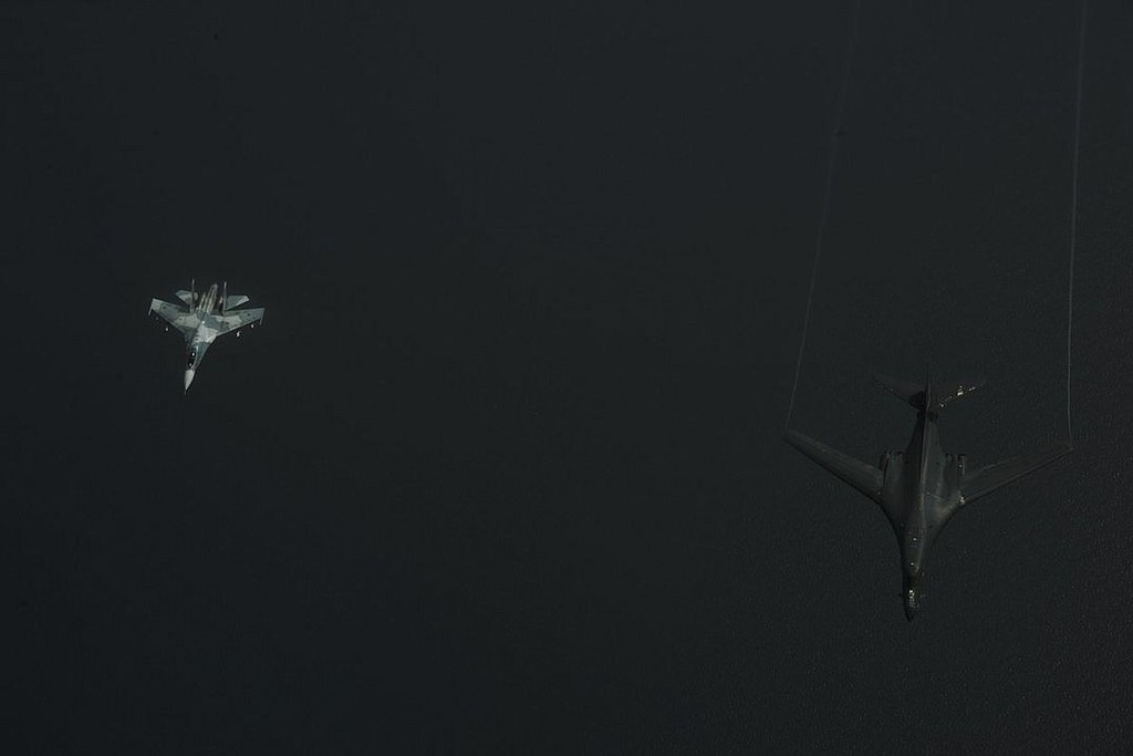 ▲攔截照,圖左為俄羅斯Su-27,圖右則是美軍B-1B「槍騎兵」轟炸機。(圖/翻攝自美軍《DVIDS》網站,下同)