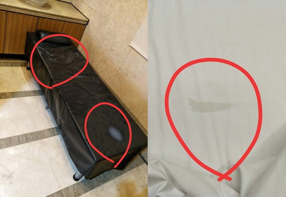 原PO在臉書社團「爆怨公社」表示,他們11日到台中西屯一間汽車旅館休息4小時,開門走進浴室準備要洗澡時,發現休息躺椅上竟然有大量不明液體,當下雖然感覺很不舒服,但因不想壞了興致,所以當作沒看到,卻沒想到洗澡、吃完晚餐後要躺到床上,掀開棉被發現更誇張的東西。