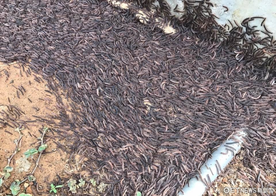 ▲梅雨鋒面即將來襲,桃園市上萬隻馬陸破土狂鑽。(圖/網友王紹全授權提供,下同)