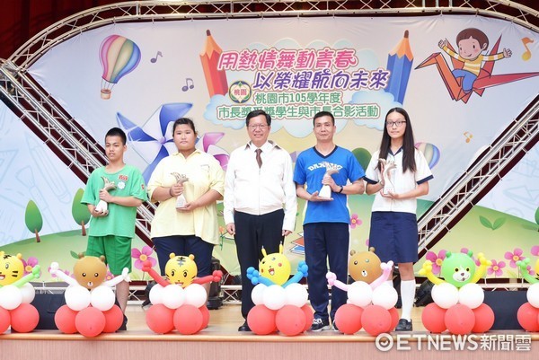 鄭文燦表示,今年獲市長獎的有715位同學,不論在體育、音樂、數理或科學等多元學習方面具有傑出表現; 獲獎學生中,桃園啟智學校游育婷同學孝順貼心,常陪伴身體不適的母親到醫院就醫,有一雙靈巧的手,能做出精緻的手工藝品,擁有基礎美髮的技能。