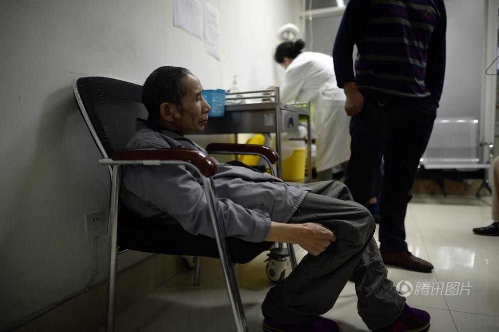 重慶新橋醫院眼科手術室內有一位駝背老人在接受白內障手術,這名來自貴州桐梓縣的61歲駝背老人李志剛天生背部脊椎彎曲,無法像平常人一樣躺著,為了讓他能順利接受手術,4名醫護人員協同操作,讓他重見了光明。