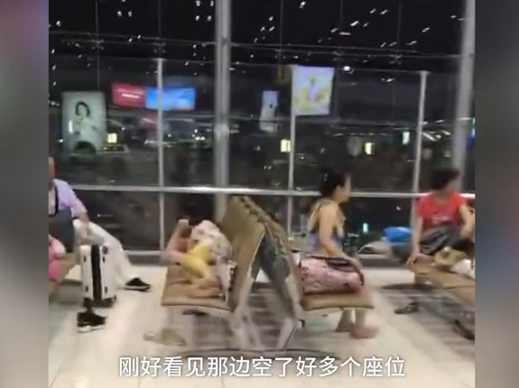 影片中,只見機場的候機室裡,一排坐位至少都坐著一名遊客為同團的人佔位,有些人橫著坐,有些人則是直接躺下來睡,畫面中一名女子原本想坐在一名中年男子隔壁,硬生生被阻止了,甚至還被嗆「告訴你有人,你怎麼不懂事」,沒想到旁人不僅沒有阻止,反而還跟著一起罵,讓當事人相當錯愕,還痛批「丟了中國人的臉」。