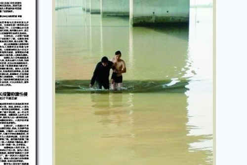 公安及救援人員果真在離岸邊300公尺外的第三根橋墩看見一名年輕男子泡在水裡,當時江水以已經淹過他的胸口,情況十分危急,只好趕緊游過去將人帶往淺水區再慢慢引導回岸邊。