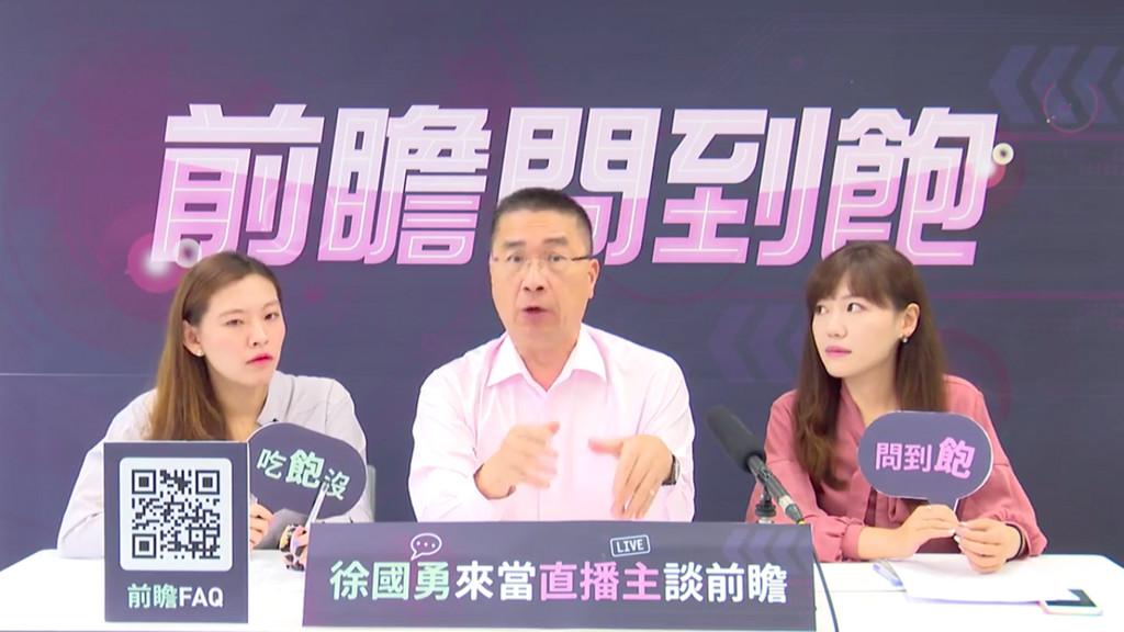 ▲徐國勇16日當起直播主回應網友對前瞻的提問。(圖/民進黨網站影片)