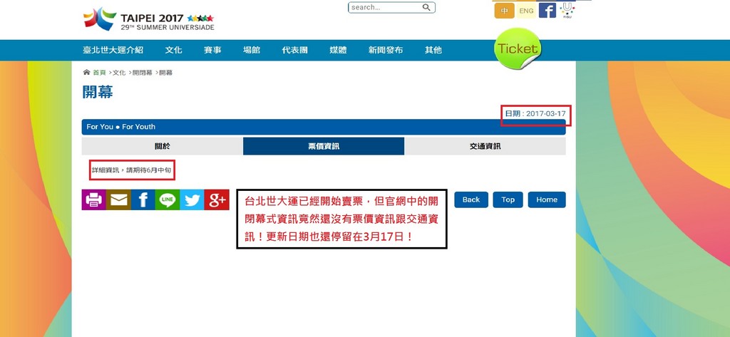 ▲世大運門票開始賣了官網卻沒更新。(圖/議員許家蓓辦公室提供)
