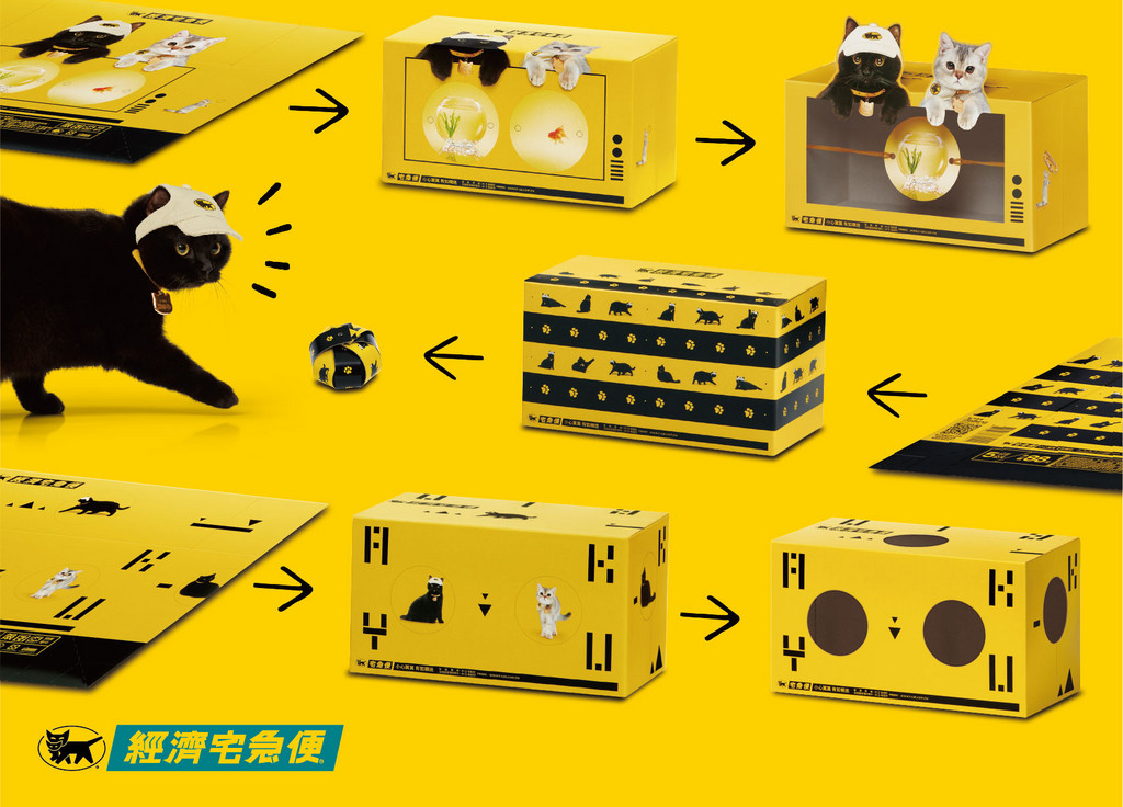 日前黑貓宅急便一則以貓咪為主角所拍攝的活動影片,在網路上爆紅,短短1個多月就有近40萬人次瀏覽。對此,其還緊接著推出第二波活動,將「經濟宅急便」外箱設計成三款可以剪裁變成貓咪的玩具,像是撥撥球、戳戳樂及電視機三種樣式,每款都超可愛。