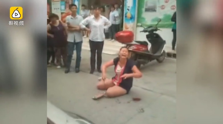 ▲女子遭惡犬撲倒猛咬,坐在地上痛哭失聲。(圖/翻攝自梨視頻,下同)