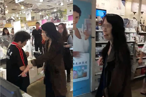 影片中可以看到,這名身穿黑衣黑裙、頂著波浪長髮的女子對賣場人員大吼大叫,只見工作人員無奈地說「妳一直來,我當然要擋住阿…」,結果下一秒女子就拿起拿起試吃品往另一名賣場人員砸去,讓在場所有人當場傻眼,頻頻勸阻女子「欸欸欸,你不可以這樣喔」。但女子似乎無意罷手,接著又拿起試喝飲品砸人,直到一名身穿黃色上衣的男性工作人員出面制止,將人請出場,才結束整起鬧劇。