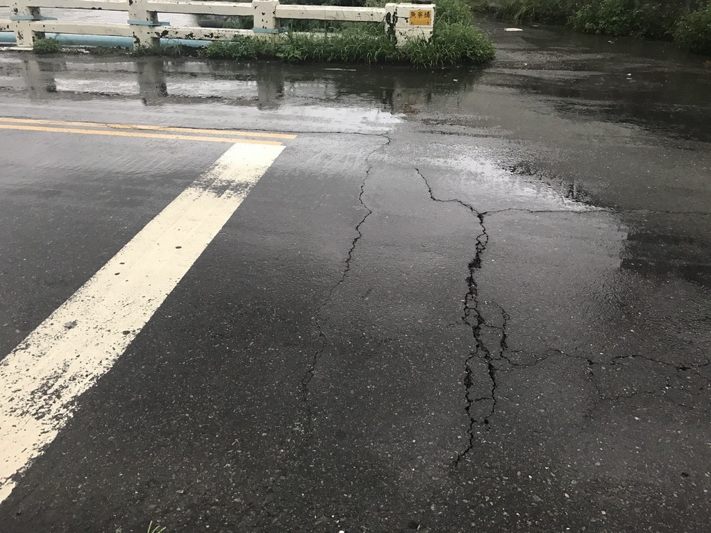 ▲彰化縣大城鄉魚寮溪橋路面出現不規則裂縫,魏明谷深夜指示封橋。(圖/翻攝自魏明谷臉書)