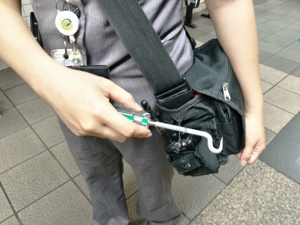 ▲北捷車長隨身攜帶溝槽異物排除工具。