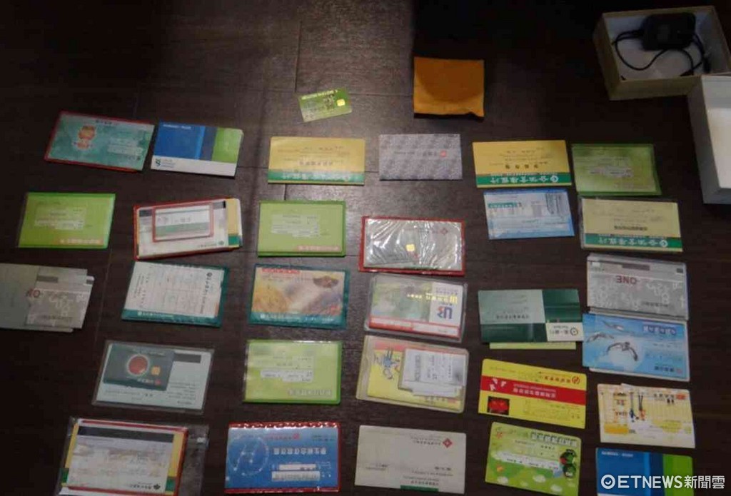 ▲警方當場起獲張姓詐騙車手提領的郵局、銀行等存摺及金融卡。(圖/記者林悅翻攝)