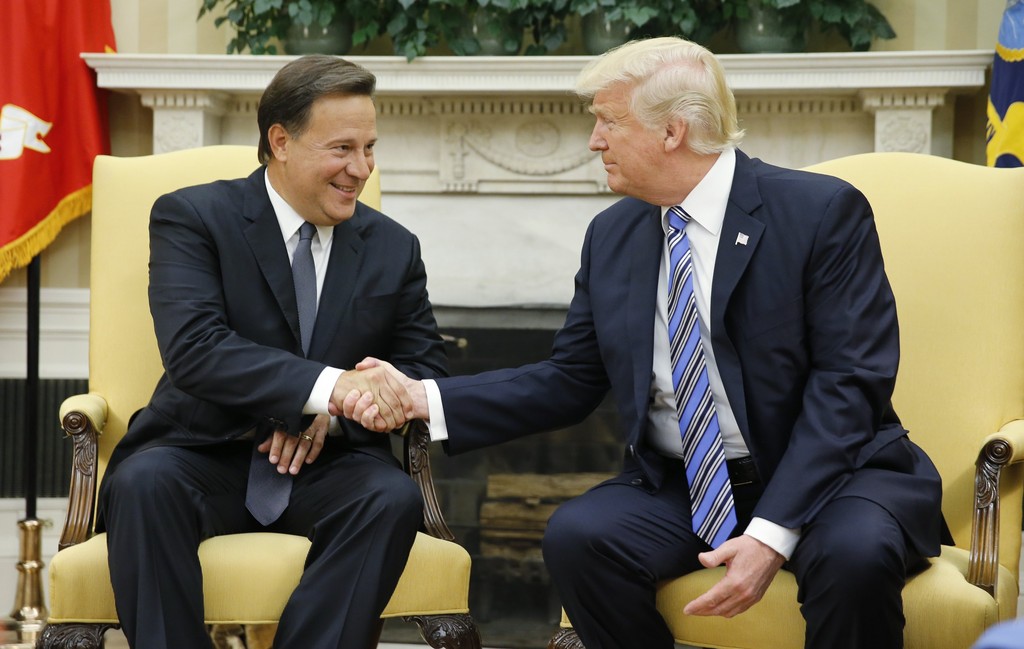 ▲與台灣斷交後,巴拿馬總統瓦雷拉(Juan Carlos Varela)19日訪美,與美國總統川普會面。(圖/路透社)