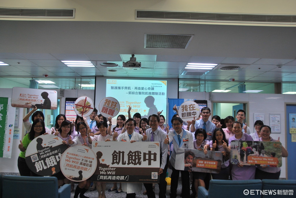 郭綜合醫院響應台灣世界展望會第28屆飢餓三十體驗活動,號召百餘名醫護同仁、志工團隊等工作人員,在二樓門診一同熱情參與「醫護攜手齊飢、再造愛心奇蹟」,親身體驗飢餓並捐出所省下的餐會,幫助更多飢餓的兒童。