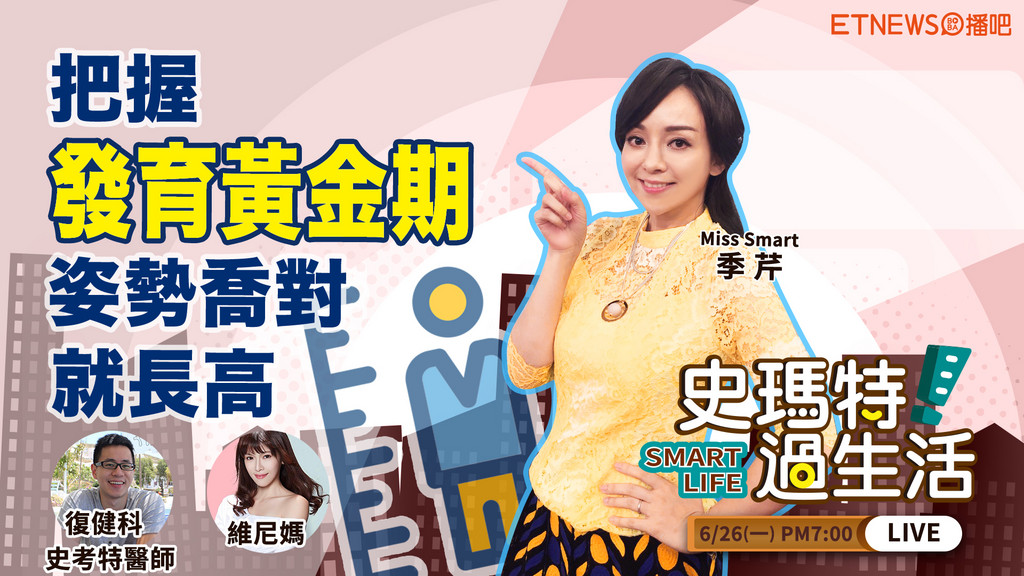 看著孩子漸漸長大,「登大人」時卻發現怎麼樣也長不高?「一分鐘健身教室」的史考特醫師說,錯誤的姿勢會導致脊椎和骨盆的歪斜,看起來就會「比較矮」。《ETNEWS新聞雲》影音平台《播吧》,在6月26日(一)晚上7~8點,播出網路社群互動直播節目《史瑪特過生活》,就來談談「如何喬對孩子姿勢!」