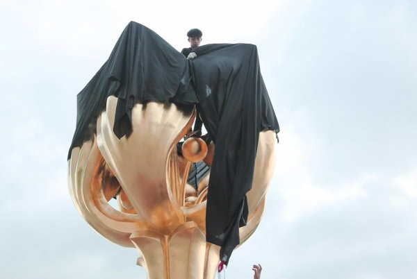 「香港眾志」秘書長黃之鋒、周庭、人民力量譚得志及社民連等約20人成員,突然出現在灣仔金紫荊廣場,將數塊黑布纏在金色紫荊花雕塑上。當他們試圖要將整座雕像都用黑布給蓋住時,被保安人員發現、報案。大約15分鐘後,有警員到場將黑布拆除,目前暫時沒有人被捕,眾人隨後分頭散去。