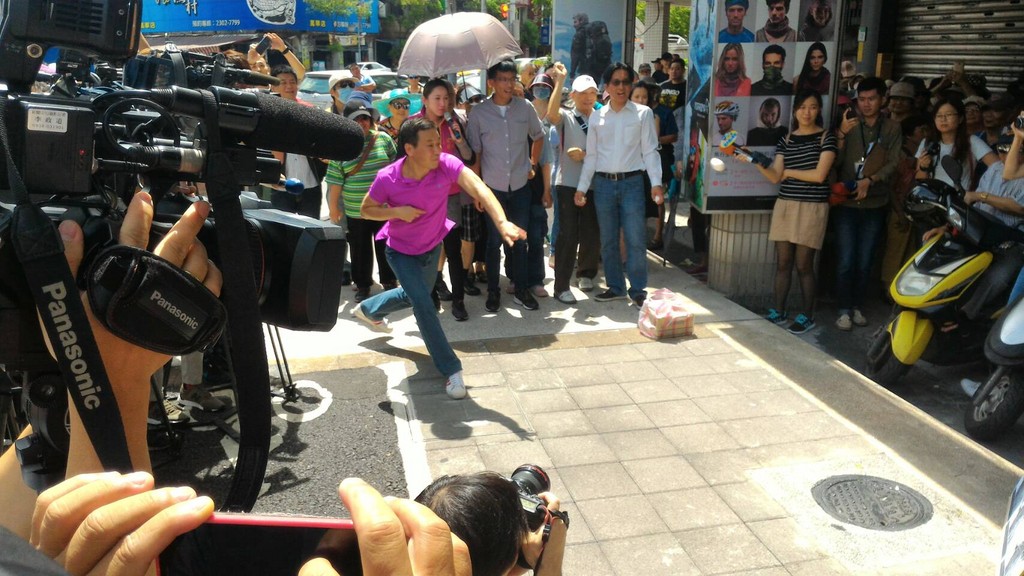 ▲鍾小平怒砸段宜康雞蛋。(圖/鍾小平議員辦公室提供)