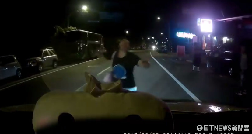 ▲男子開車回家途中遇到一名「撲車狂女」,無奈將行車影像PO上網供公評。(圖/記者林煒傑翻攝)
