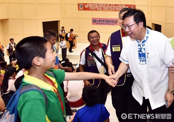 ▲鄭文燦市長專程到桃園捷運公司,歡迎經平興國際同濟會安排的11所偏鄉小學350位小朋友搭機捷,進行「戶外教學」。(圖/桃園市政府提供)