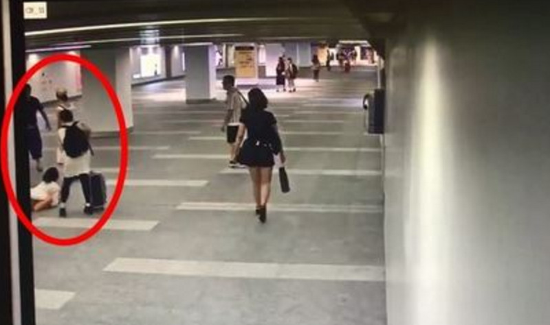 打人的是38歲吳姓街友,他在酒過三巡後跑進機場捷運的地下通道,一時失控朝經過自己身旁的47歲陳姓女子攻擊。目擊者指稱吳男當時一拳打到陳女臉上,打中她的鼻樑,當場濺血。而打人的吳男,當下竟然在站在一旁狠瞪前來攙扶陳女的路人,之後才趕緊逃跑。