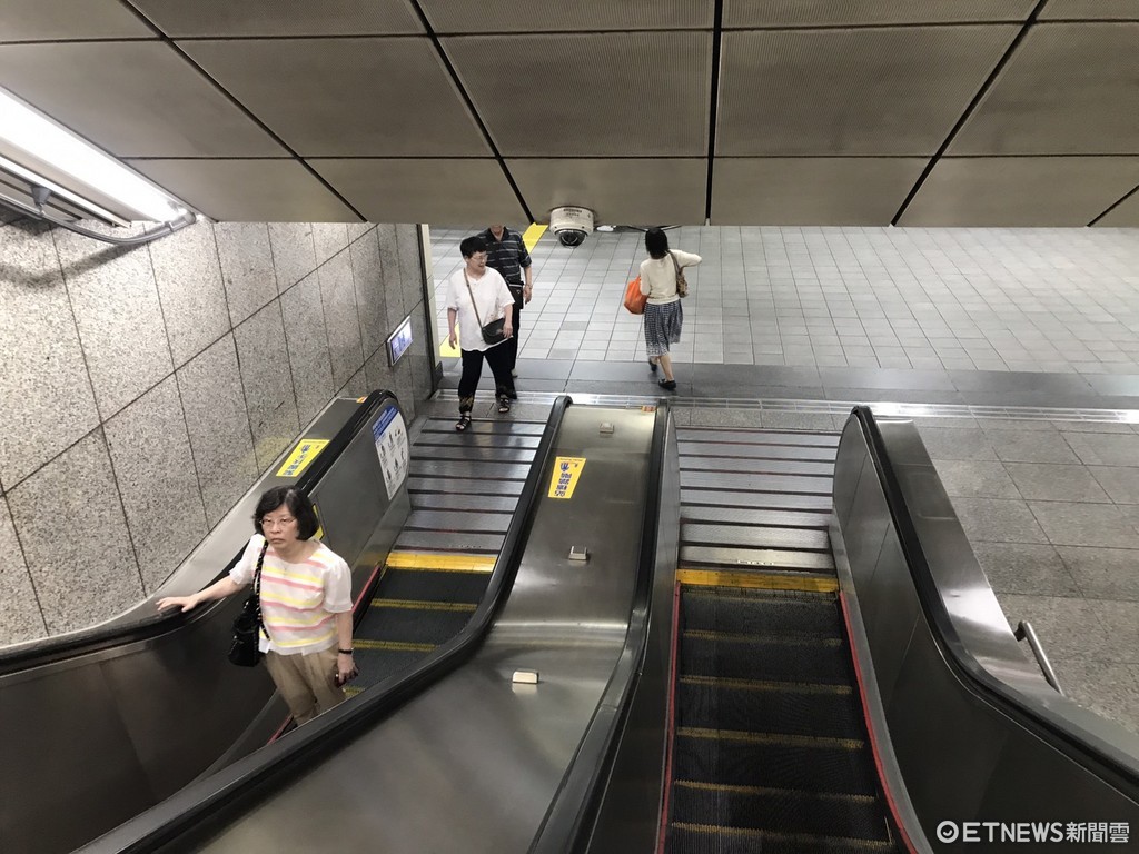 ▲董姓少年在西門捷運站四號出口的手扶梯上偷拍。(圖/記者柳名耕翻攝(下同))