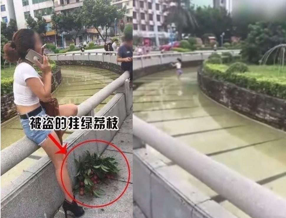 ▲號稱自己失戀的女子,渡河闖入園區內偷摘名貴荔枝吃。(圖/翻攝自大陸網站)
