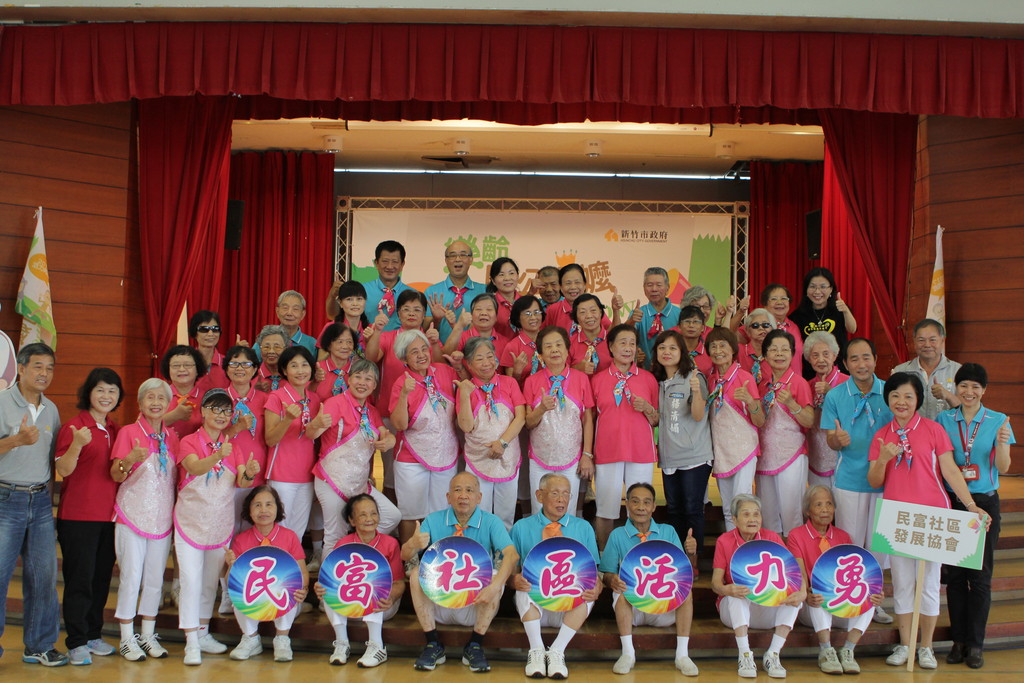 開幕儀式上午由金山社區發展協會的表演揭開序幕,由6個社區長輩組隊進行熱舞競賽,衛生局副局長楊清媚授旗給最具融合地方特色及健康活力的民富社區及科園社區,代表竹市進軍8月份國民健康署舉辦的「2017不老青春逗陣行」分區競賽,預祝力奪金牌,為新竹市爭光。