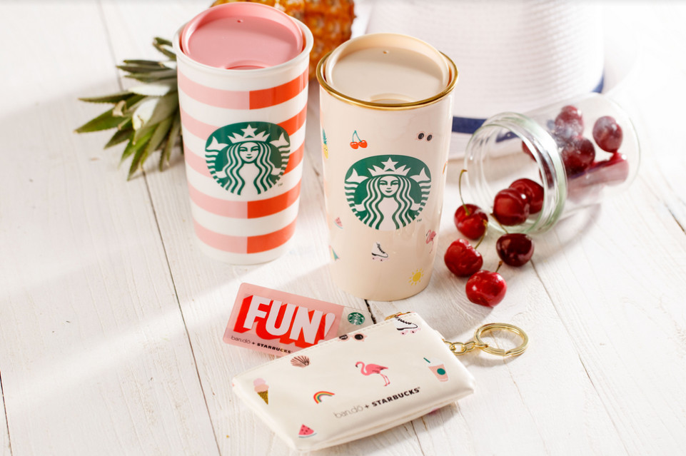 今年5月星巴克首度攜手BAN.DO推出聯名商品,其中熱帶花卉設計的雙層馬克杯、TOGO杯最受歡迎,在上市數日即搶購一空,掀起收藏話題。此次,主要以海灘、度假樂趣為靈感,設計一系列清爽夏季感的聯名單品,價格帶約在450~850元間,像是冷水杯、鑰匙包、筆袋等生活配件,從中可以看見插畫風格的童趣圖案,如鳳梨、墨鏡、星冰樂的筆繪設計,整體充滿夏季清新的少女氣質。