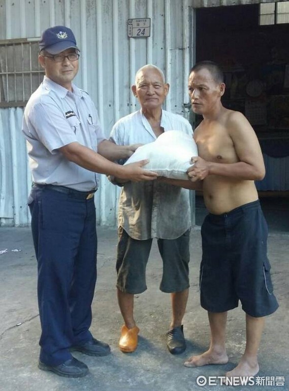 ▲台東關山警察分局崁頂派出所警員邱成發,自購10公斤愛心米1包贈送,再自掏腰包1,000元救急。(圖/台東縣警察局提供)
